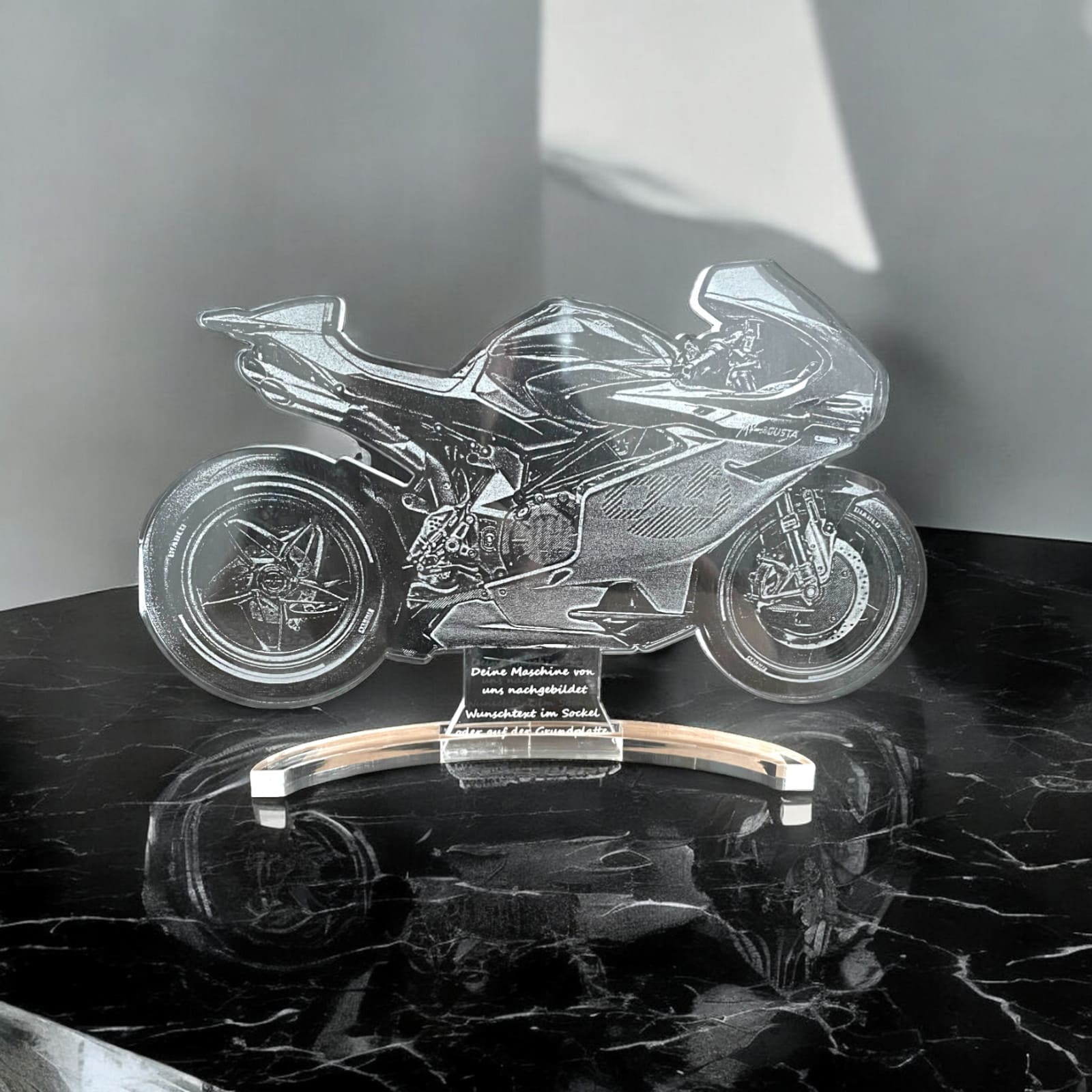 Wir übertragen deinen Text präzise auf die Grundplatte oder Motiv und achten auf saubere Linien.